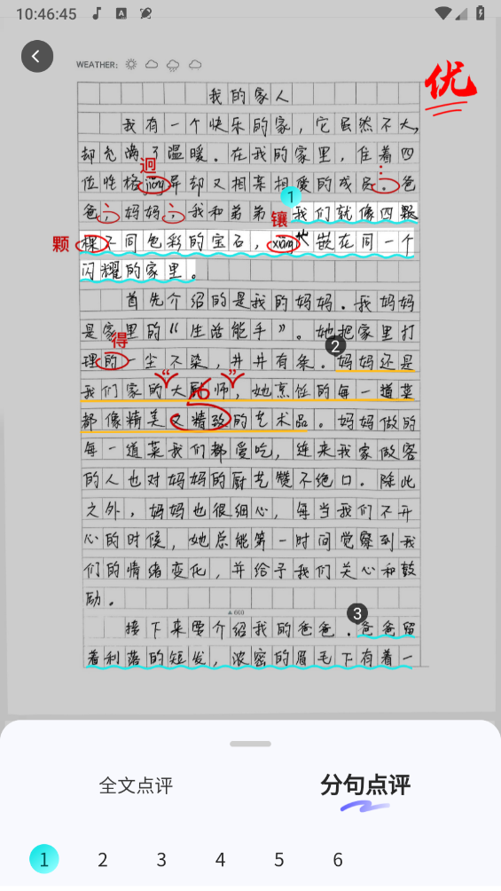 3、還可以進行切換"作文批改",作文一鍵潤色,專業分句點評。