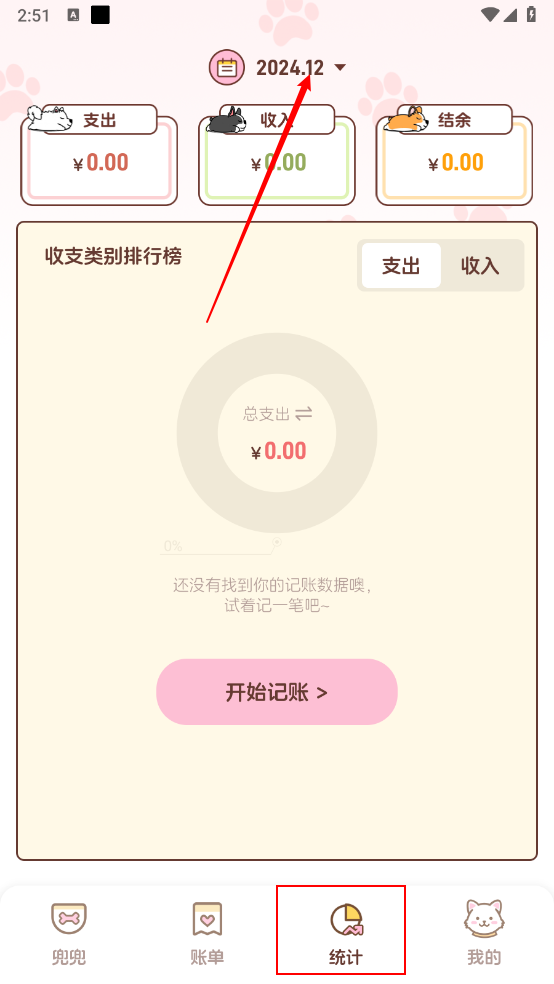 7、最后在"統計"板塊可以查看每月的支出、收入等數據。