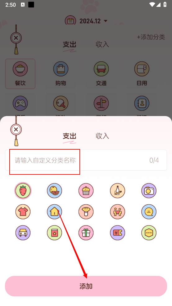6、如圖,根據個人需求進行自定義所需記賬的目錄,點擊"添加"即可。