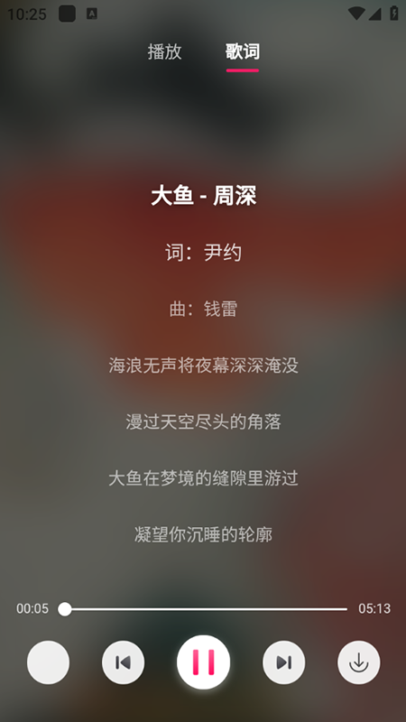 4、播放體驗優化:懸浮播放器支持上下切歌、查看播放列表,兼容多場景使用;通知欄與鎖屏顯示播放狀態,方便快捷操作;歌詞實時滾動顯示,支持左右滑動查看完整歌詞與專輯封面。