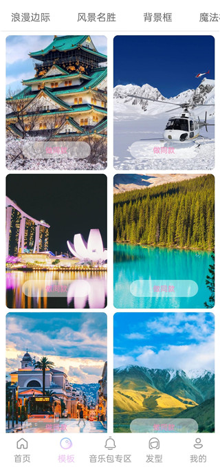 2、【拼圖模版】提供多種布局方式,即使是不同數量的照片,也總能找到合適的拼圖模版,自定義照片比例,使用形狀拼圖,一鍵即可生成炫酷海報拼圖。