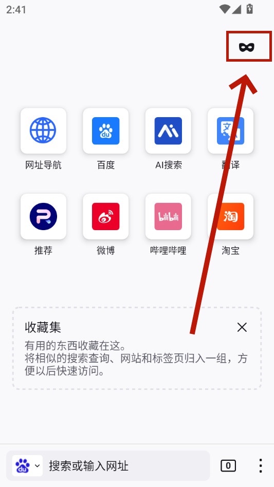 進入之后點擊右上角可以切換成隱私模式