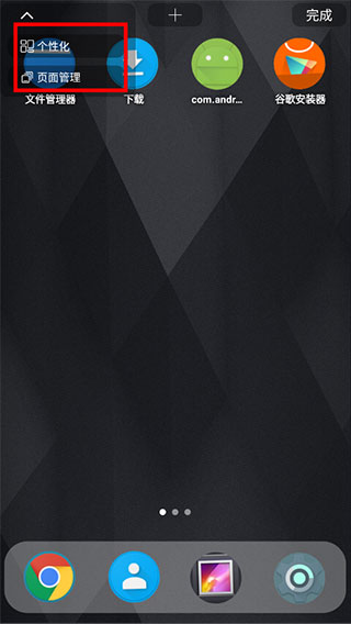 5、這時你可以進行個性化和頁面管理對桌面設置;