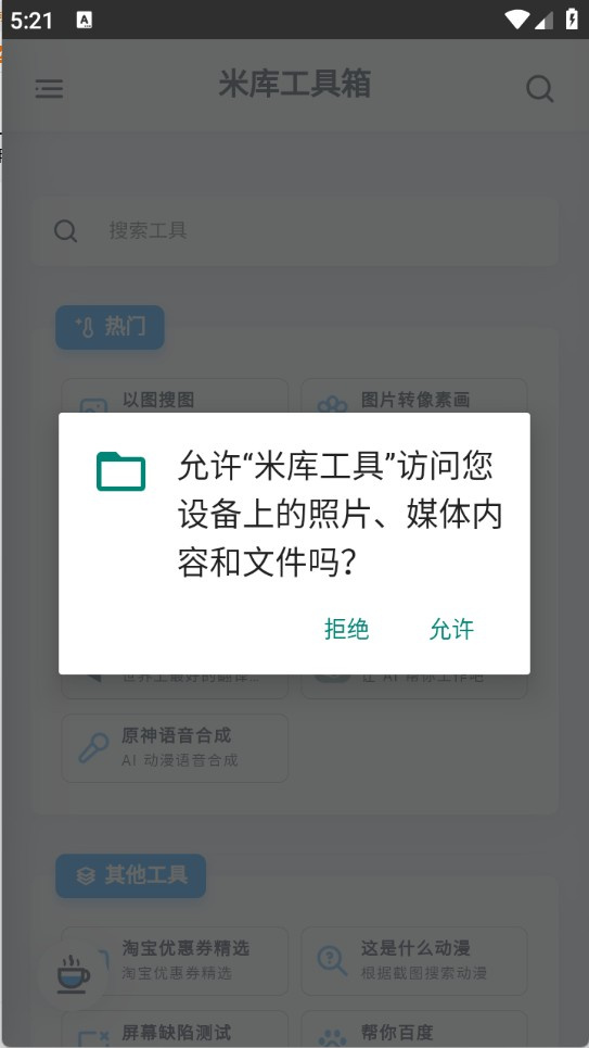 1、打開米庫工具箱app,并授予必要權限,確保功能正常運行。