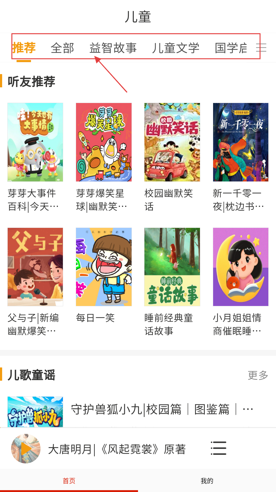 2、在【兒童】頁(yè)面,有推薦、益智故事、兒童文學(xué)等。找到心儀的故事后點(diǎn)擊進(jìn)入。