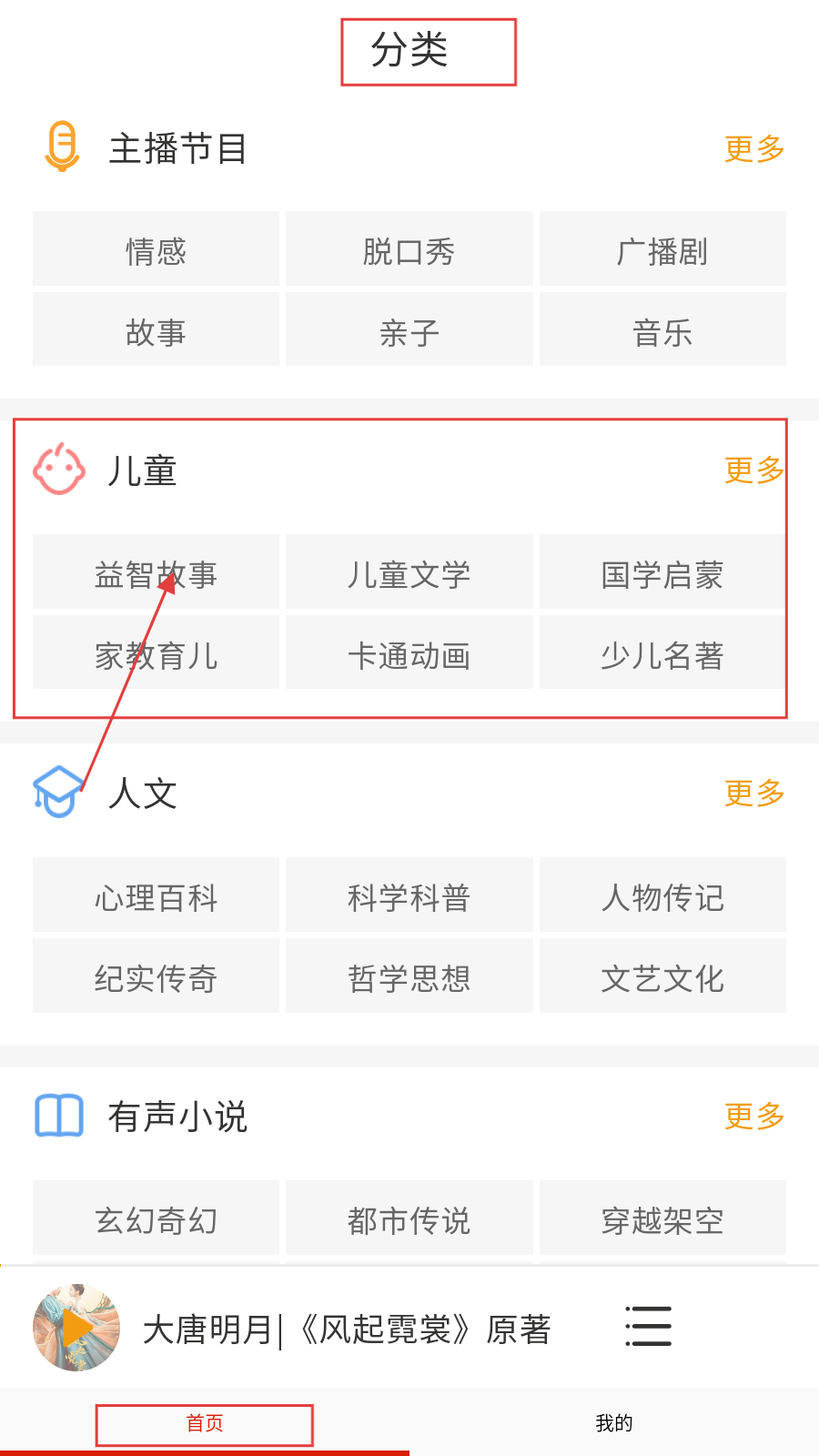 1、進(jìn)入應(yīng)用,在首頁(yè)的【分類】頁(yè)面,點(diǎn)擊【兒童】分類進(jìn)行查看。
