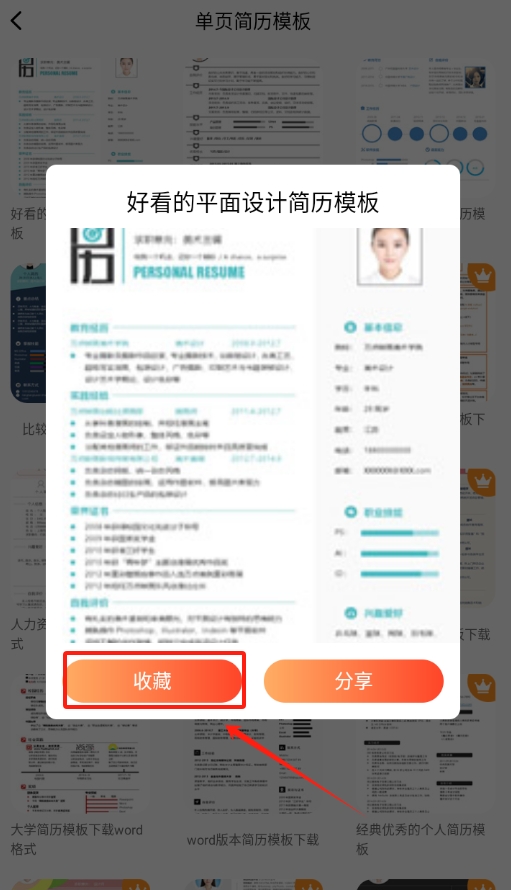 3、在模版詳情頁面上,能看到收藏按鈕,點擊這個按鈕,就能把當前的模版收藏起來,方便之后查找使用。