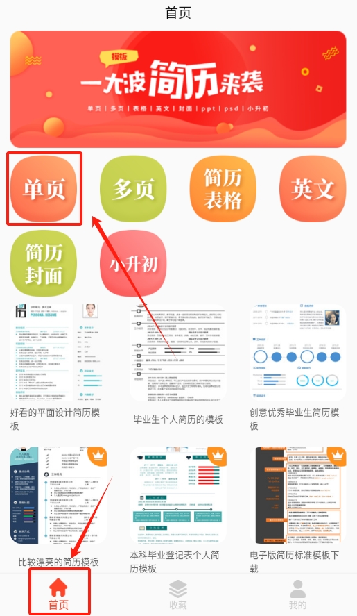 1、打開做簡歷,在首頁上能看到各種模版類型,根據自己的需求挑選合適的模版類型,點擊進入該類型的模版列表頁面。