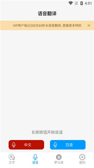 6、選擇語音,可以長(zhǎng)按對(duì)應(yīng)的語言按鈕說話進(jìn)行翻譯;