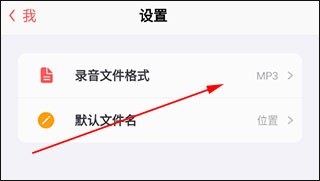 3、進入到隨聲鹿設置中,點擊【錄音文件格式】。