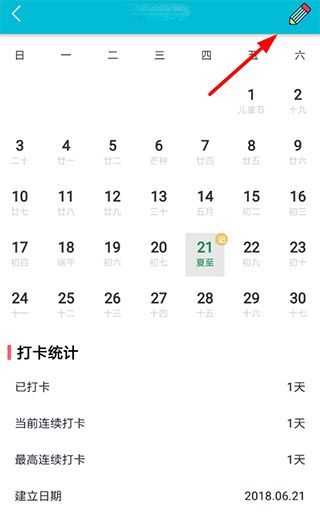 3、當然用戶還可在日常寫打卡日志,記錄一些生活趣事,以及擦看當月打卡天數;