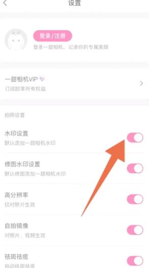3、隨后是關(guān)閉水印設(shè)置,然后是翻轉(zhuǎn)到設(shè)置的頁(yè)面之后,找到頁(yè)面中水印設(shè)置右側(cè)的滑塊,點(diǎn)擊關(guān)閉。