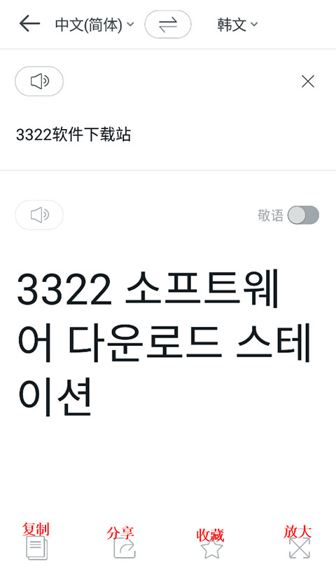 3、然后編輯你想翻譯的中文,下方就會出現對應的韓文,還支持語音哦!