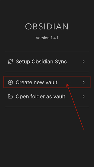 2、單擊【Create new vault】創(chuàng)建一個新庫,即Obsidian筆記的存儲目錄,后續(xù)將設(shè)置為云同步。