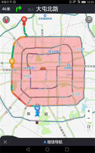 5、導航會按照設置的路線引導,這就是手動設置途徑點,繞行限行區的全部操作流程。